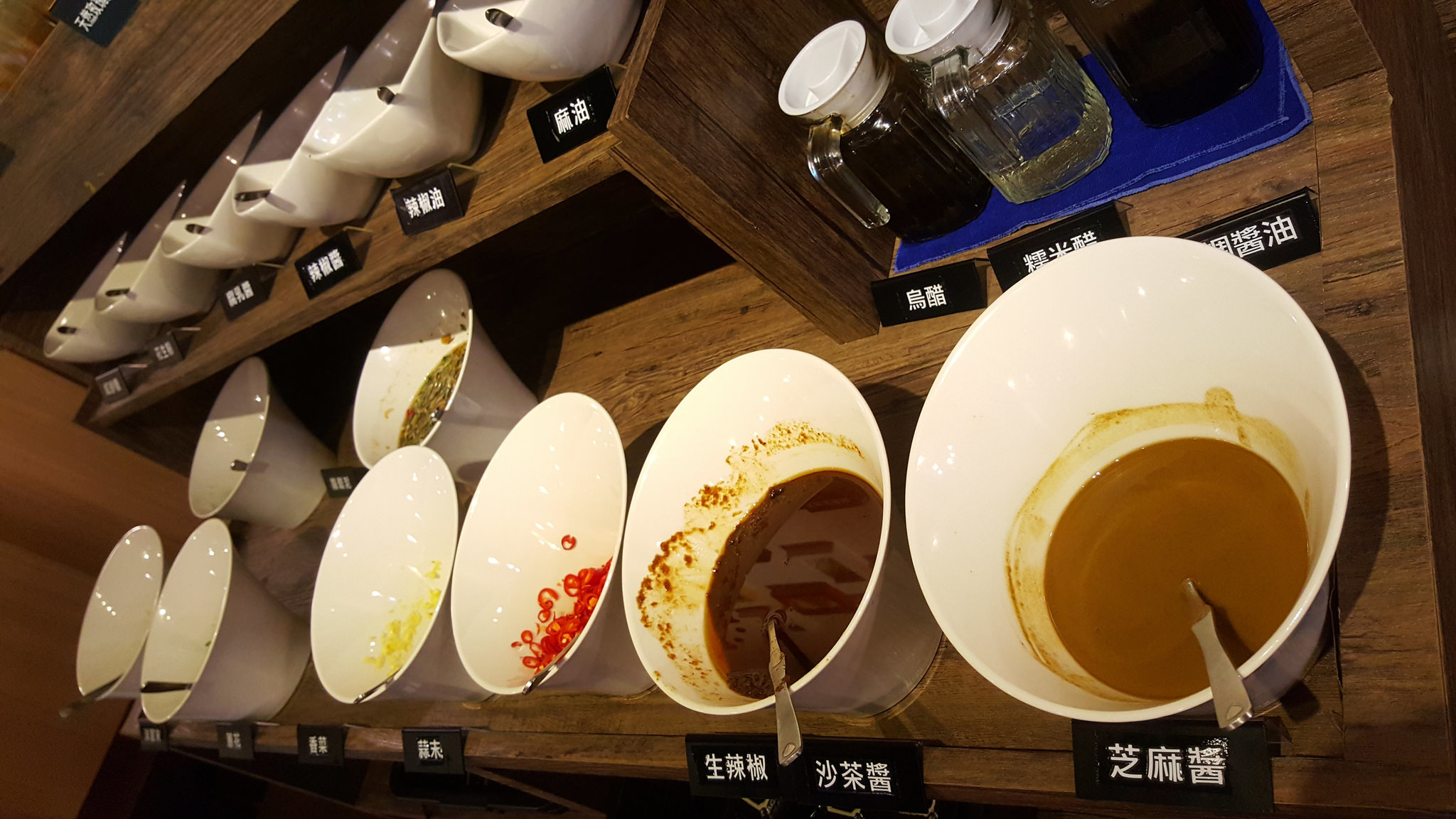 醬料檯有提供蒜泥、蔥花、洋蔥…等,基本上你用的到的醬料檯上應該都有,