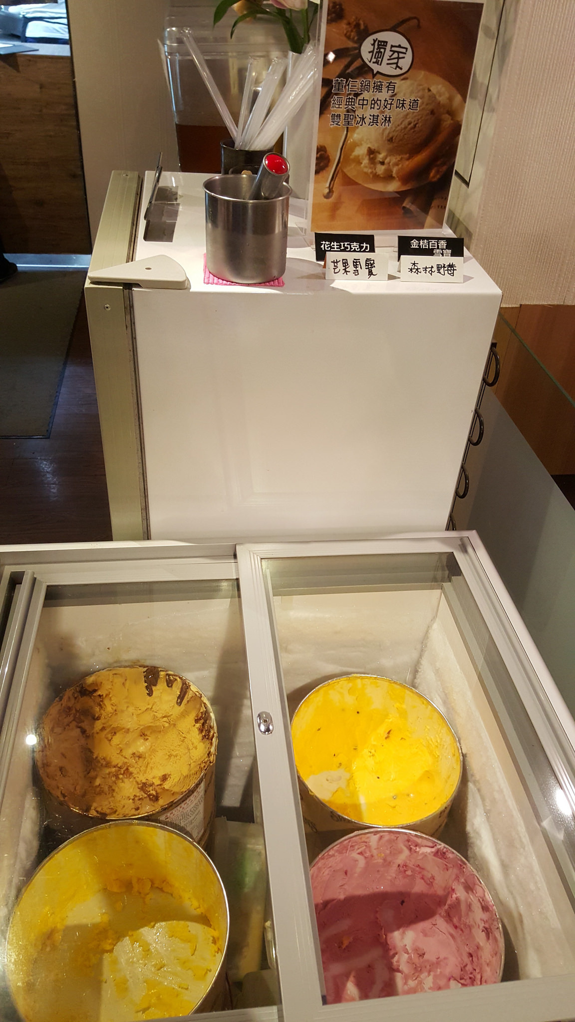 自行取用的免費飲食則還有雙聖的冰淇淋,每次的口味隨機,不大一定。另外還會提供兩種免費飲料讓客人享用,但是我沒有拍到。