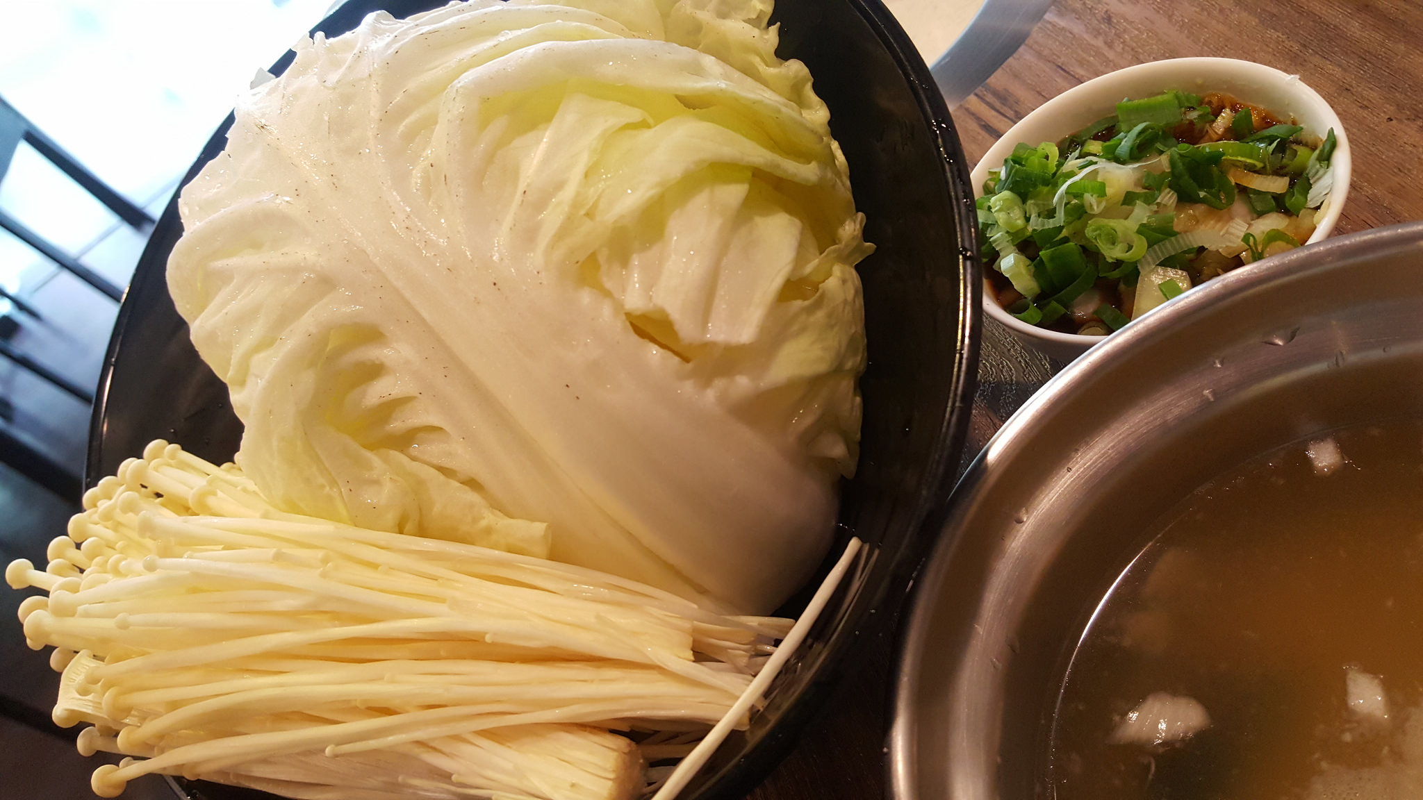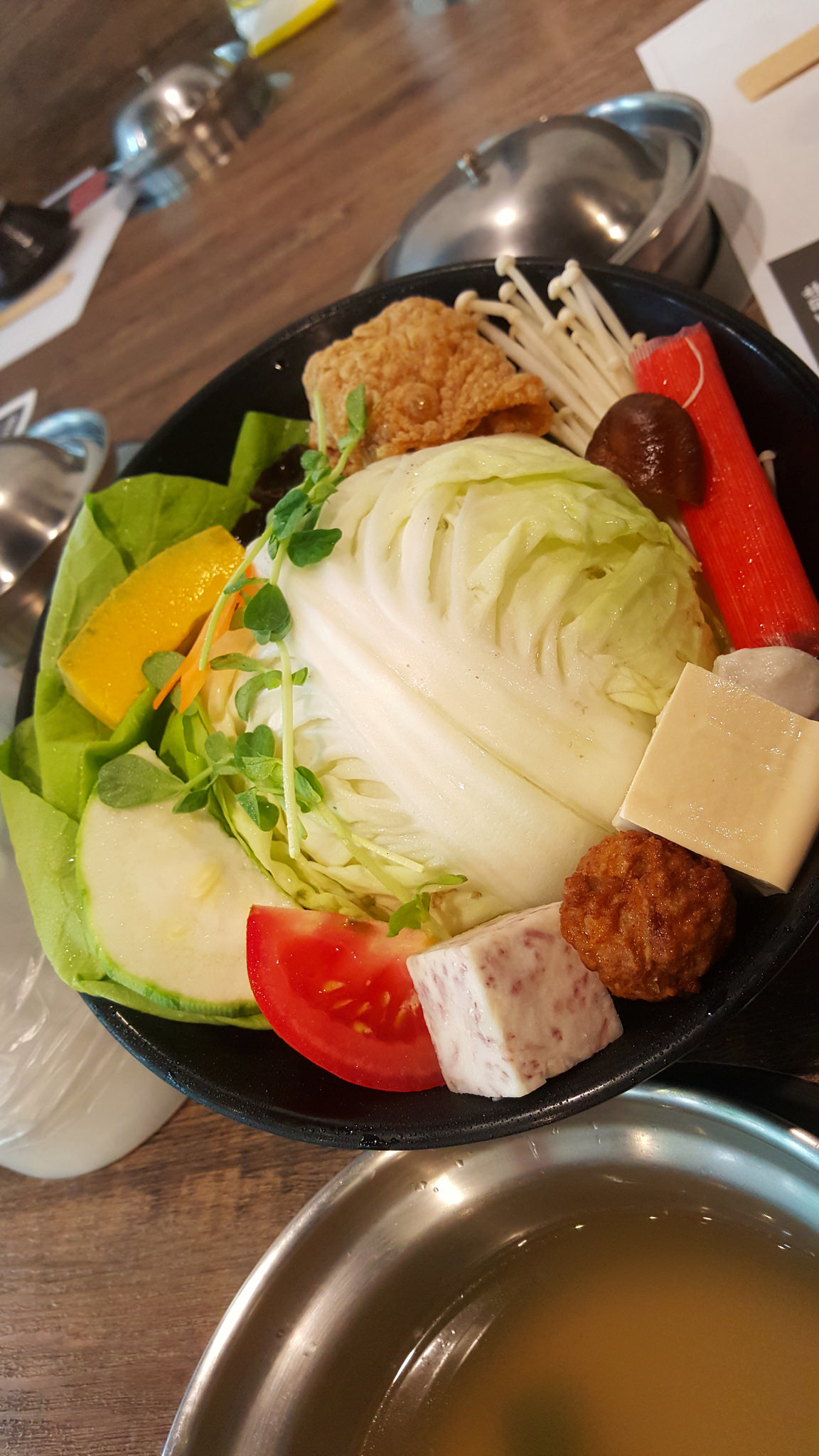 但即便如此,我還是會習慣把我不吃的火鍋料換成我愛吃的金針菇,所以我本人吃涮涮鍋的基本菜盤很容易長這樣,