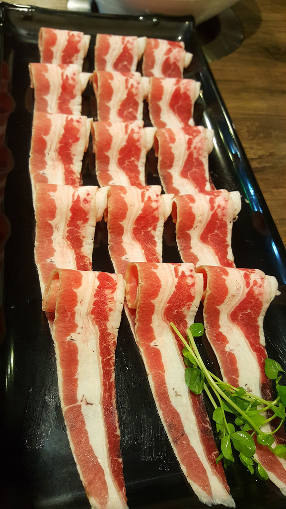 如果你本人偏好油脂集中的肉品,培根牛是很好的選擇!在外頭平價涮涮鍋的培根牛越來越油到一個幾乎要沒肉可吃的狀態下,董仨鍋的培根牛還能保持有大約一半的肉量。Btw我有一回在常去吃的店家吃培根牛,就是看到整片幾乎都是油而沒有肉,吃到讓我覺得生氣!